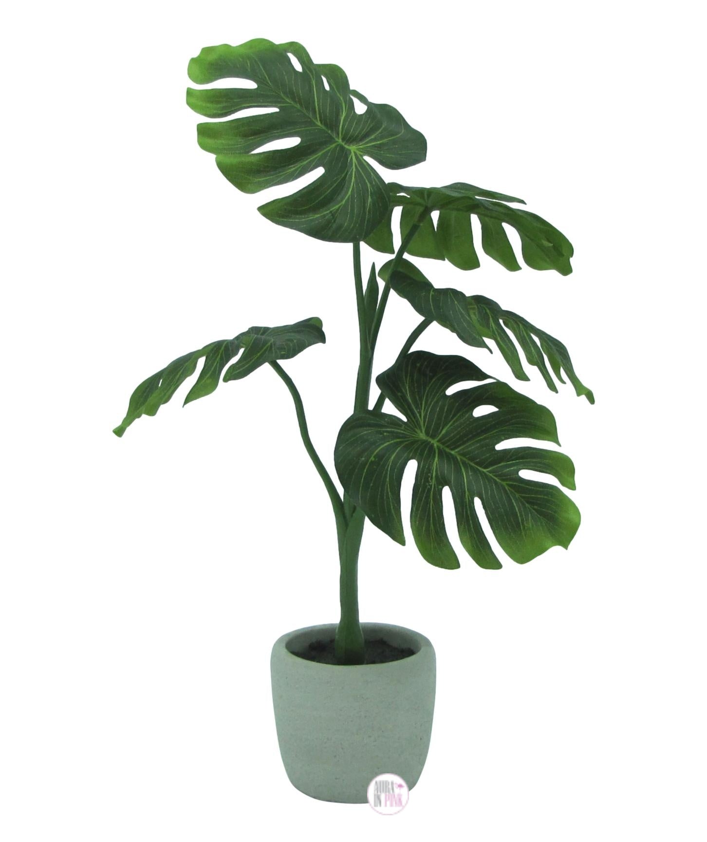 Realistic Mini Clay Potted Jungle Monstera Deliciosa Silk Plant Decor Aura In Pink Inc